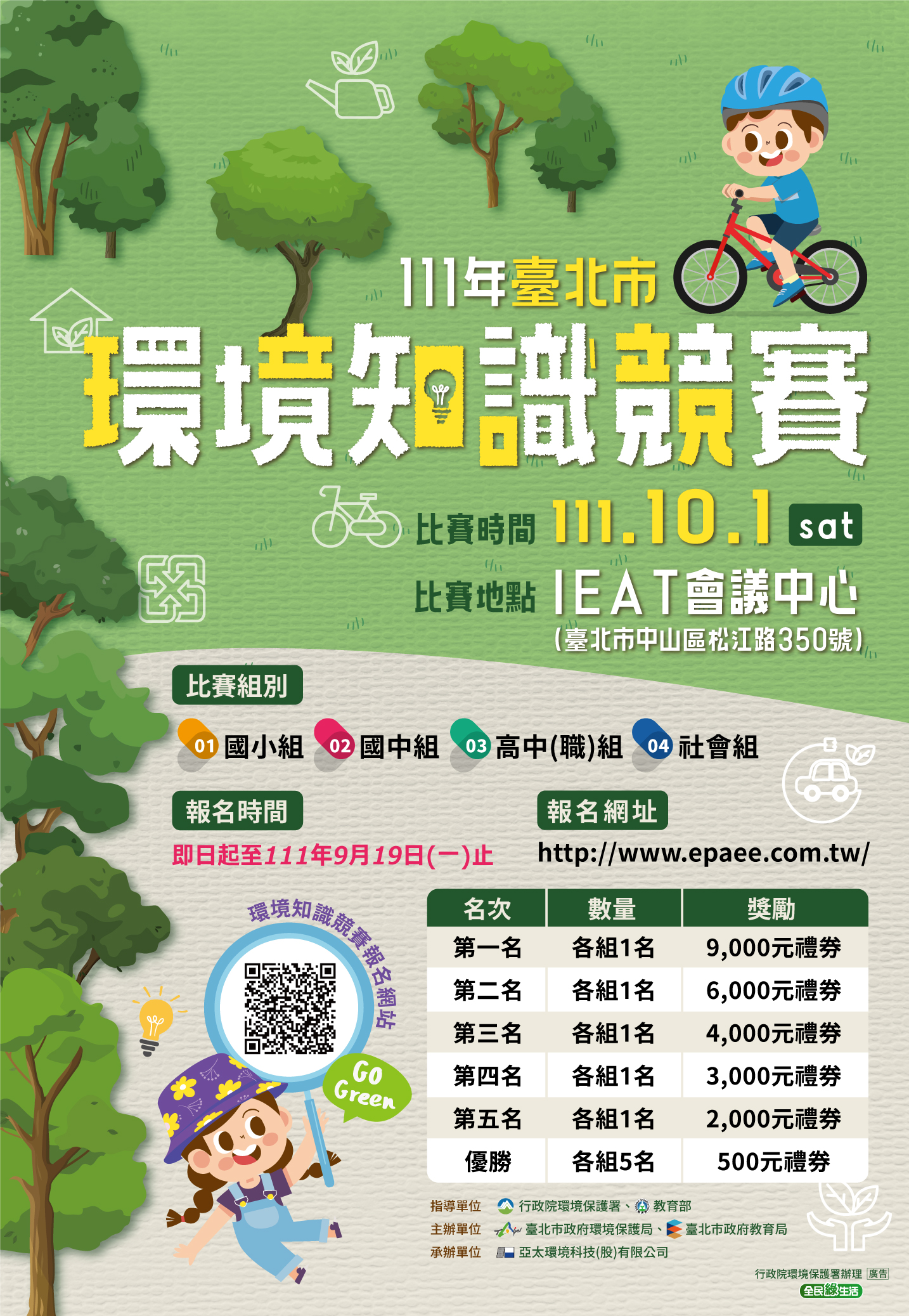一、本市初賽報名日期至111年9月19日止,一律採網路報名, 有意參加者請至活動官網(http://www. epaee.com.tw /)登記報名,屆時競賽會場請遵守本局防疫規定,以落實 防疫安全。
