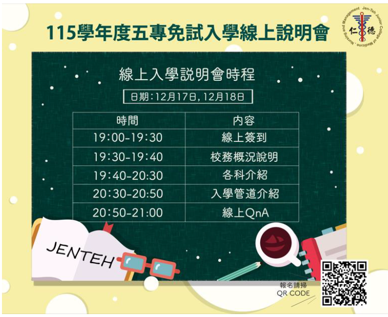 仁德醫護管理專科學校「115學年度五專免試入學線上說明會」