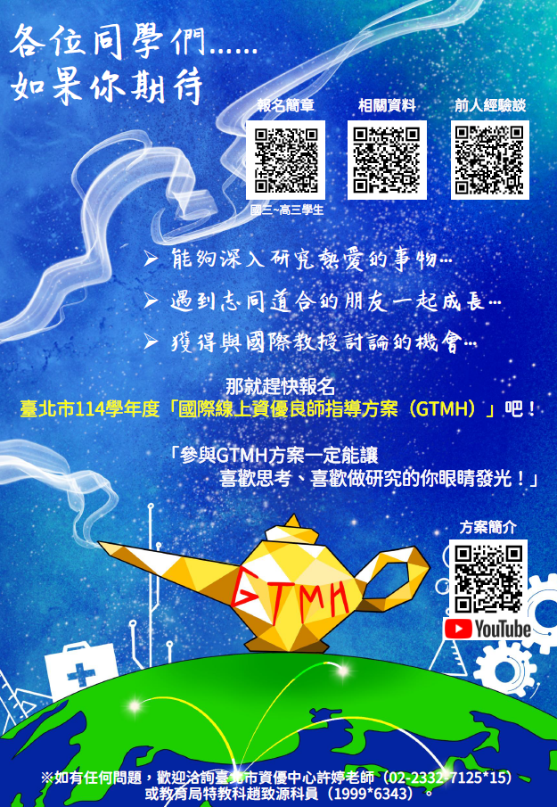 (1)就讀本市科學班或經本市鑑輔會鑑定通過之學術性向數理資優學生。